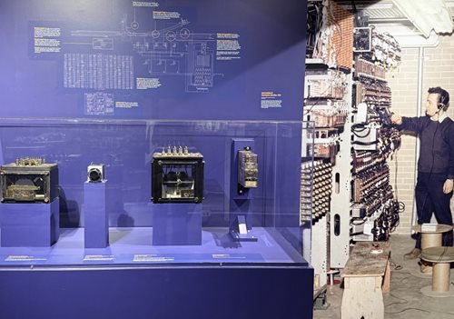 At junctions and terminals, towers controlled switch points with electro-pneumatic machines: an electrical command from the lever frame energized a magnet, which opened a valve, which directed compressed air to move the switch. Each lever was wired into interlocking logic: no conflicting routes could ever be set. As curator Jodi Shapiro put it: “One of the cool things about an interlocking is it’s just yes or no.”